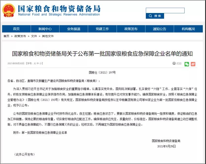 有效提升應對突發(fā)事件能力,確保國家糧食安全,按照《糧食應急保障企業(yè)管理辦法》(國糧倉規(guī)〔2021〕193號)有關規(guī)定,