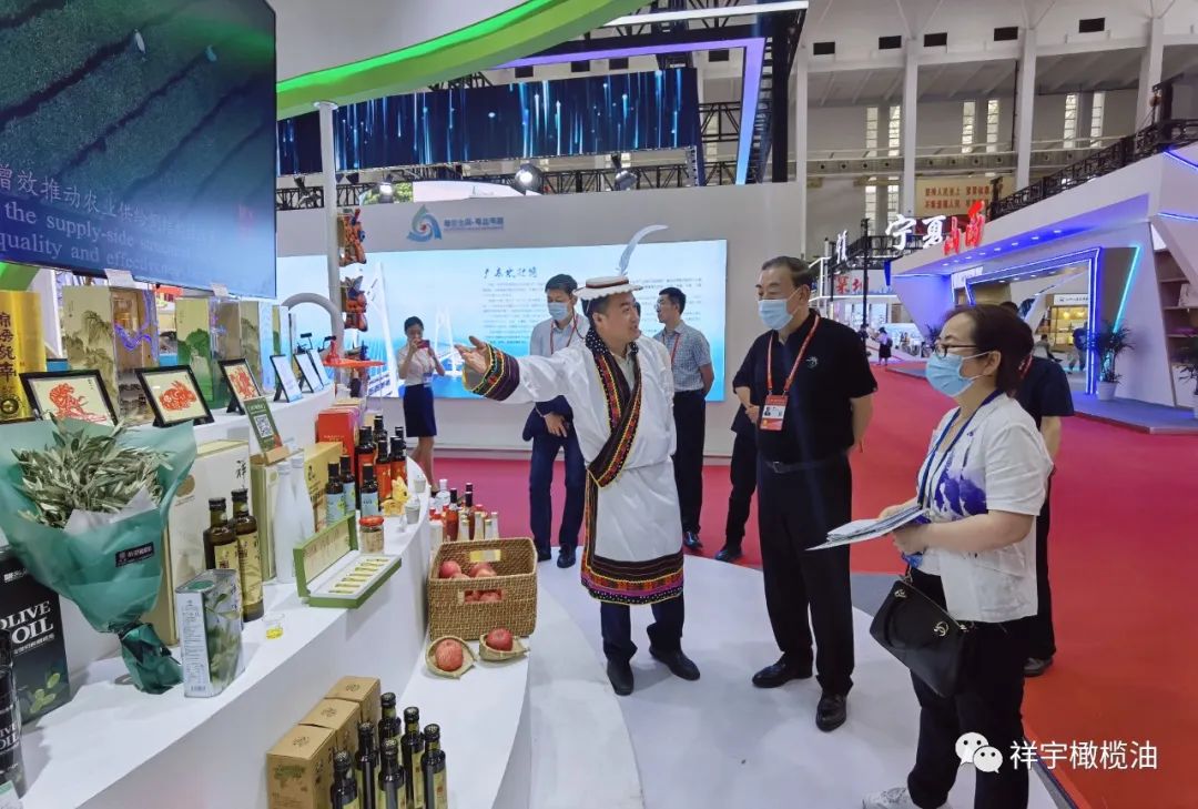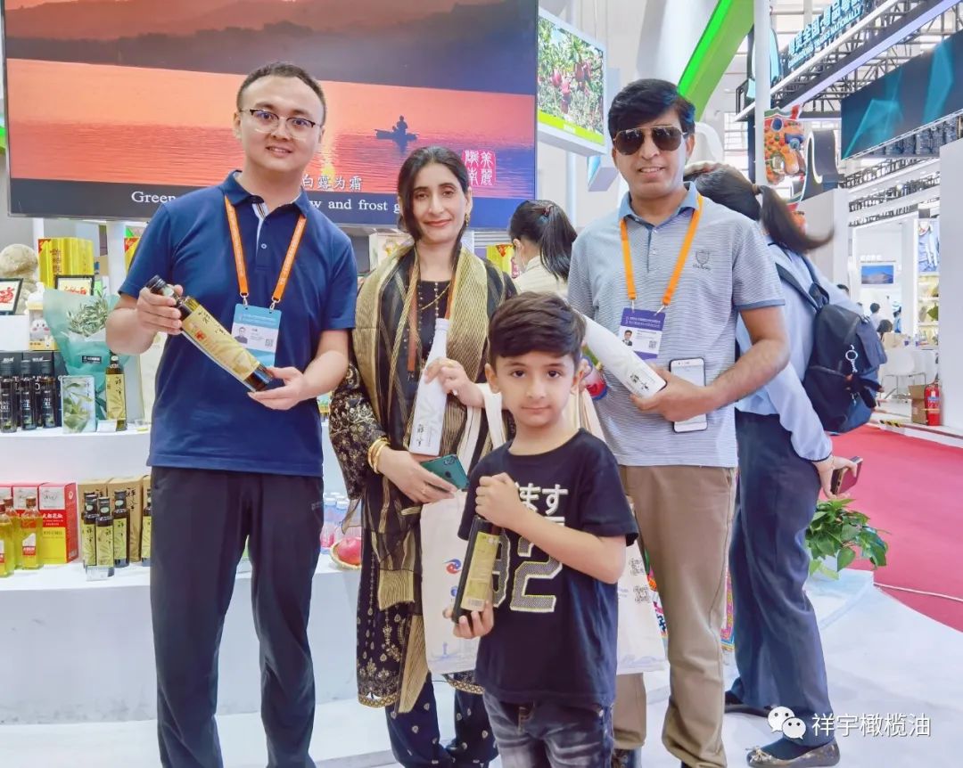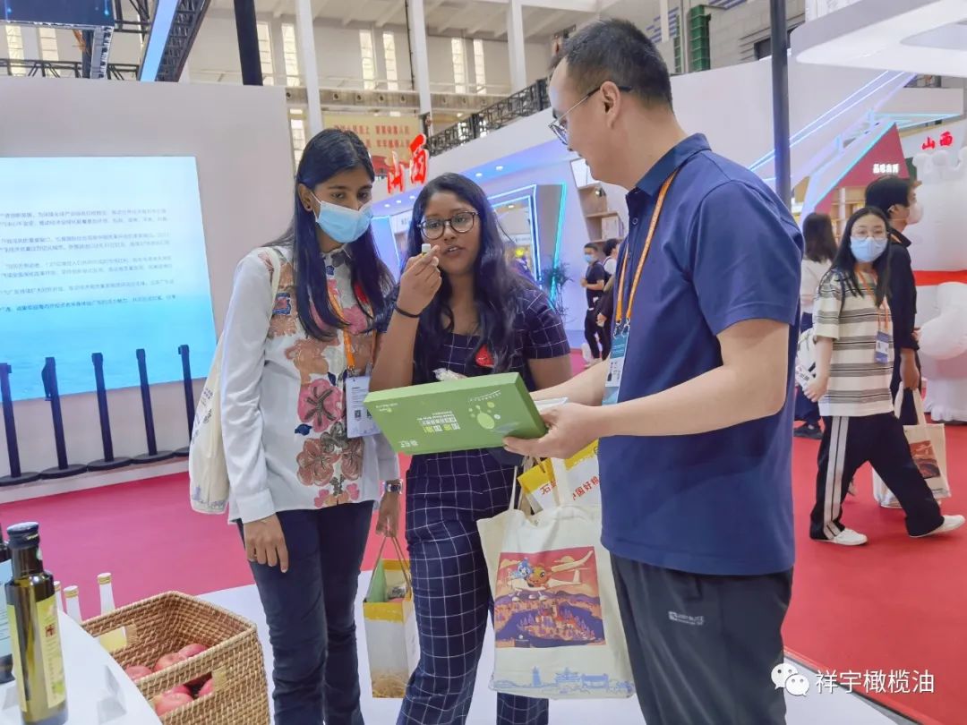 展會(huì)現(xiàn)場(chǎng),來(lái)賓、客商紛紛到祥宇橄欖油展臺(tái)前駐足品鑒,