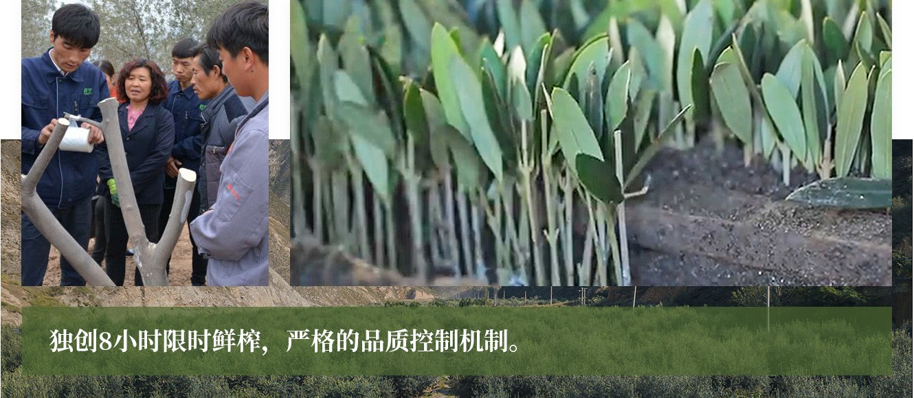公司從產(chǎn)業(yè)鏈起始端著手,引進(jìn)良種優(yōu)苗,繁育基地苗圃,優(yōu)化樹種,以優(yōu)質(zhì)的橄欖樹苗為生產(chǎn)特級初榨橄欖油提供基礎(chǔ)保障 ,在以自建萬畝國家標(biāo)準(zhǔn)化油橄欖種植基地、簽訂合作社及農(nóng)戶的基礎(chǔ)上,經(jīng)過多年的試種改良,培育出掛果率出油率高、耐寒耐旱且適宜隴南市栽種的萊星、鄂植8號、阿斯、科拉蒂、皮瓜爾、皮削利等多個優(yōu)良品種。